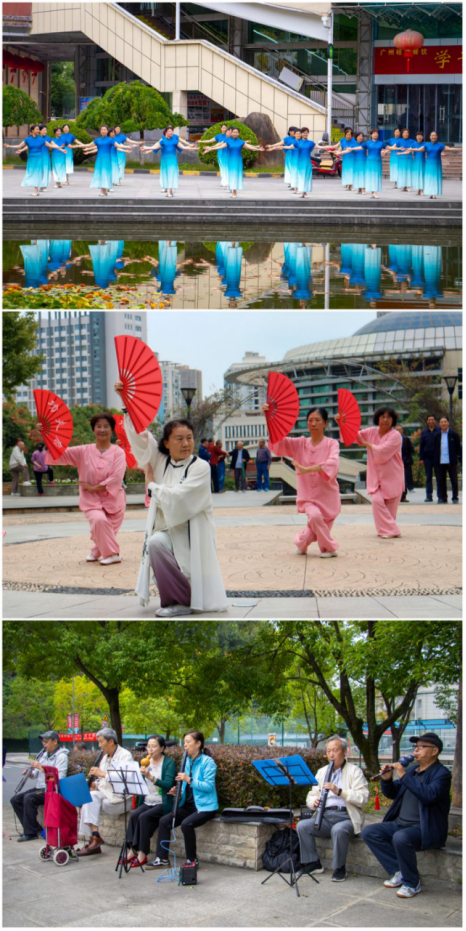 随着一曲优美的音乐响起,离退休银龄舞蹈队翩翩起舞,拉开活动帷幕。随后,大家漫步于镶嵌在秋色中如诗如画的流水游园,一边观赏美景,一边欣赏离退休职工走秀班、拳剑班和葫芦丝班公开课表演。