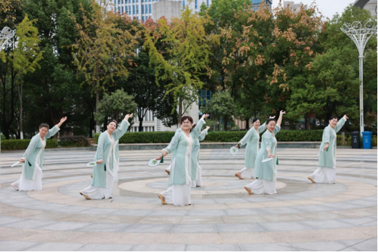 随着一曲优美的音乐响起,离退休银龄舞蹈队翩翩起舞,拉开活动帷幕。随后,大家漫步于镶嵌在秋色中如诗如画的流水游园,一边观赏美景,一边欣赏离退休职工走秀班、拳剑班和葫芦丝班公开课表演。