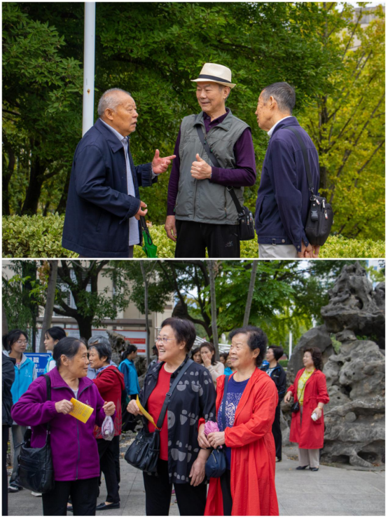 校园里,秋风送爽,金桂飘香,老同志们精神矍铄,热情高涨,大家三五成群,尽享运动带来的身心愉悦。话当年、忆友情,重温着往昔校园岁月,笑谈着如今退休生活,校园的林荫大道上不时响起一片片欢笑声。