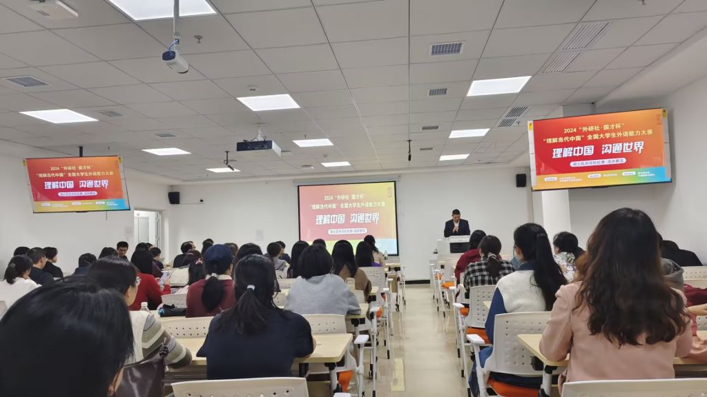 本网讯(通讯员 傅珏)10月11日至13日,2024“外研社•国才杯”“理解当代中国”全国大学生外语能力大赛英语组口译、演讲、综合能力、笔译比赛、短视频大赛以及中文组短视频大赛在我校举行,由我校人文社会科学院外语课部承办。大赛主题为“理解中国,沟通世界”,来自全校15个学院的近200名中外学生参加比赛。