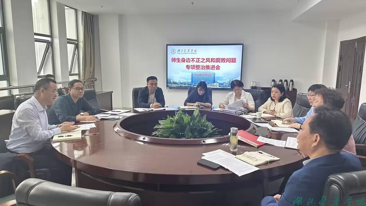 校纪委、监察专员办公室传达中央纪委国家监委主要领导在集中整治工作推进会议上的讲话精神、湖北省纪委监委关于强力推进群众身边不正之风和腐败问题集中整治工作推进会会议精神。党委主体办、资产管理处作为两个专项整治项目牵头责任单位分别汇报整治工作推进情况、问题整改及下步攻坚任务。审计处、财务处、后勤处就各自职责任务汇报配合开展专项整治工作情况。