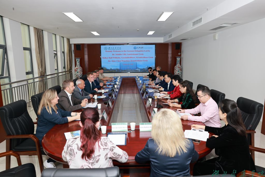王云甫对德国代表团的到来表示欢迎,他介绍了学校的办学历史、学科特色、人才培养、国际合作等情况,期待双方在专业交流、人员交流、学生交换、合作科研等方面开展实质性合作。护理学院院长、直属附属太和医院党委委员、副院长童强介绍了直属附属太和医院的有关情况。