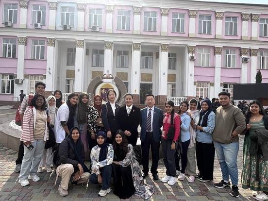 10月14日上午,代表团访问了哈萨克斯坦国立医科大学。在热烈友好的氛围中,代表团参观校园,商讨联合培养、师生交流项目,并与学生开展交流,为进一步加强教育合作奠定基础。