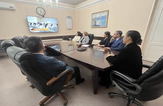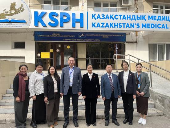 10月14日下午,代表团回访哈萨克斯坦公共卫生医科大学,与副校长Djumabekov Auyeskhan Tulegenovich、研究生教育部主任KassymbekovaAnar Nikolayevna和国际事务部主任Dana Sarsembayeva进行会谈。双方共同回顾前期合作的成果,交流我校2024年举办的“国际暑校”活动的意见建议。一致认为,结合各自的特色优势和发展规划,两校在医学领域有着广阔的合作空间,今后可以在学生交换、教师互访、联合科研等方面开展深入合作。