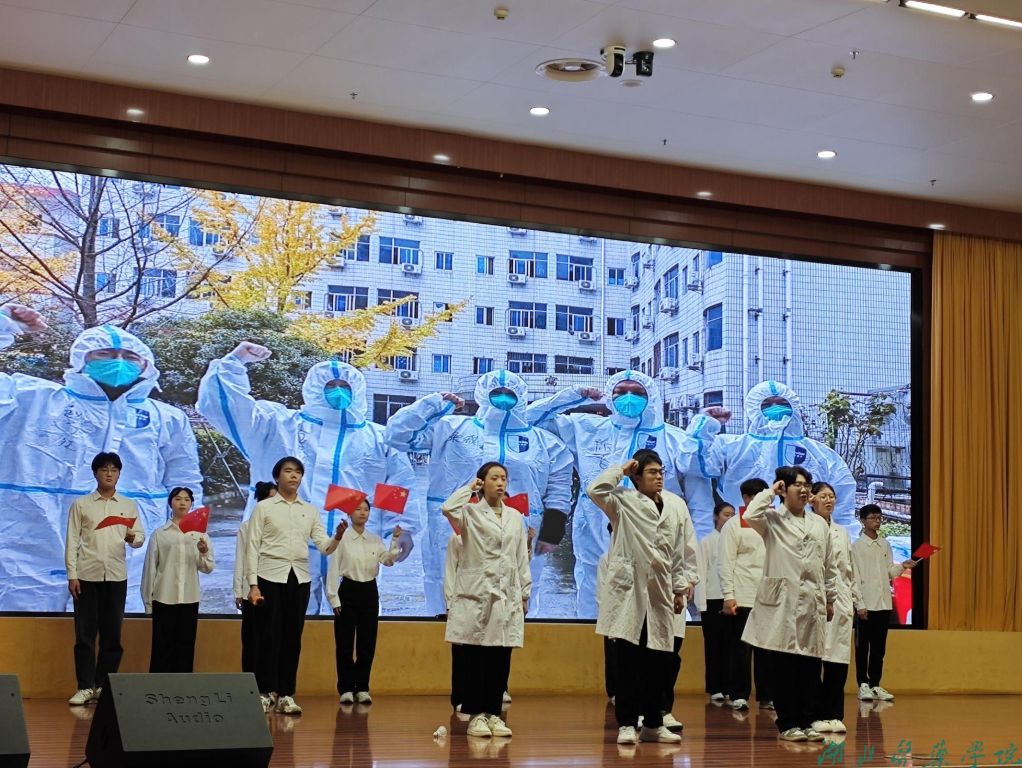 决赛现场气氛热烈,各团支部结合PPT做学习成果介绍,进行丰富多彩的风采展示。有激情澎湃的诗歌朗诵、青春洋溢的校园情景剧、活力四射的禁毒歌舞以及中医药、书法、传统乐器等中华优秀传统文化展示,赢得评委和同学们阵阵掌声。