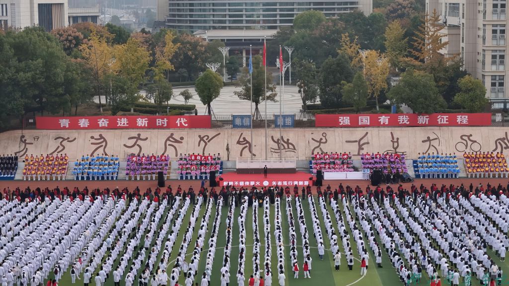 早上7点10分,湖北医药学院田径运动场上花海翻涌、歌声激昂。全体校领导、历任校领导、市内附属医院领导班子成员、离退休老领导、校友代表、学生代表以及教职工代表等共上千名师生齐聚于此,参加“躬耕不辍传薪火,矢志笃行谱新篇”59周年校庆主题升旗仪式暨建校60周年庆典倒计时一周年启动仪式。