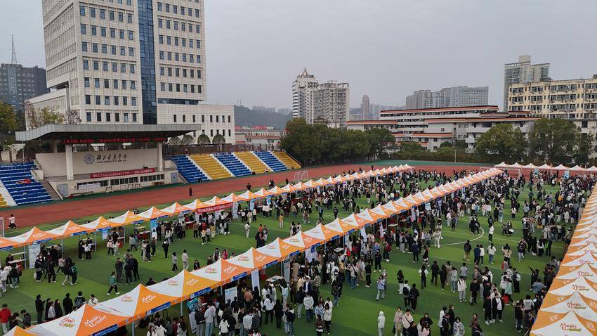 湖北日报客户端讯(通讯员 瞿培林 邢安源 农姚 闵文睿)11月7日上午,湖北医药学院2024年秋冬季校园供需见面会在该校田径运动场举行。
