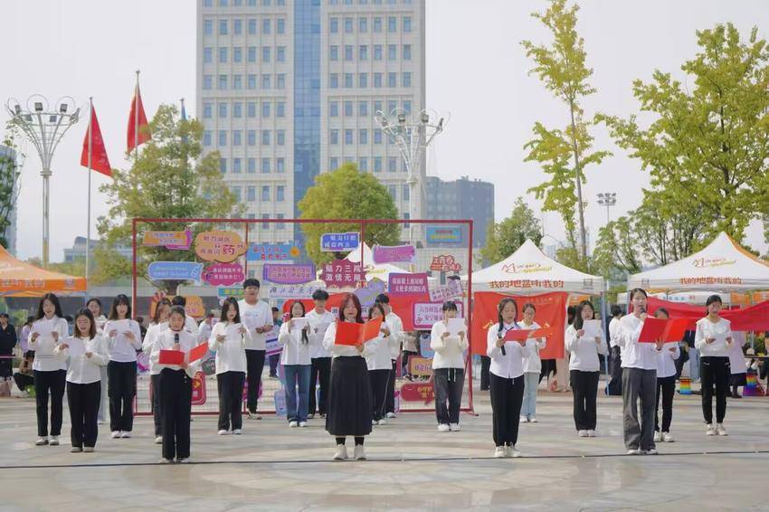 伴着熹微晨光,国旗徐徐上升,迎风飘扬。全体师生齐唱校歌,共同回忆湖北医药学院59载峥嵘岁月。弦歌不辍,薪火赓续。师生代表带来诗歌朗诵《传承》,花海随着歌声起伏摇摆,唱出湖医药人的风雨兼程,诵出59年的初心不改。“艰苦奋斗、自强不息、厚德济世、励学育人”的精神和“厚德、勤学、求实、创新”的校训高高立在花海之中,从筚路蓝缕到星辰大海,是一代代湖医药人接续奋斗,是一辈辈湖医药人守望传承。湖北医药学院1999级校友邓先锋致辞,分享母校与自己的深情厚谊,鼓励学子们胸怀悲悯之心,不断积累进步,共同致力于成为一名杰出的湖医药人。句句箴言,段段入心,激励着在场的莘莘学子。