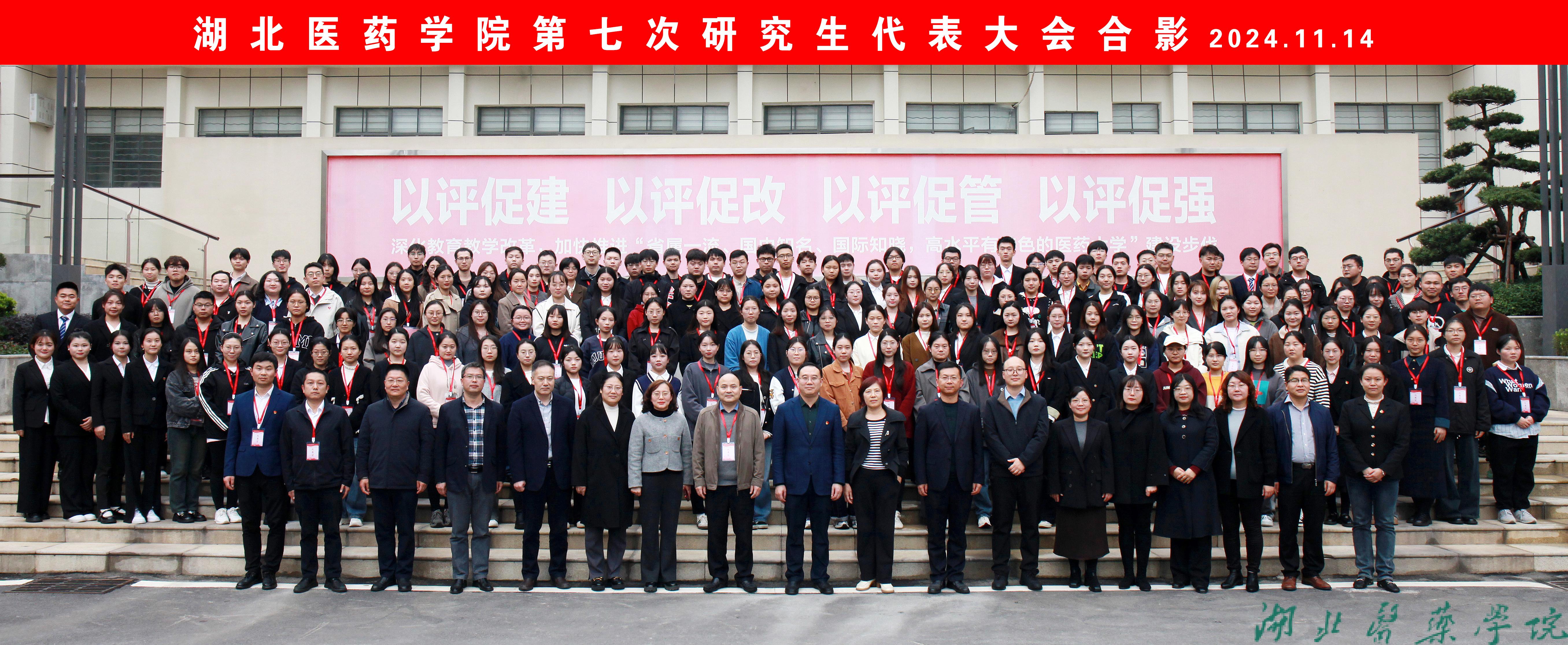 本网讯(文/王友炜 图/郭继强)11月14日,湖北医药学院第七次研究生代表大会在我校公共卫生与健康学院大楼一楼学术报告厅顺利召开。党委副书记、校长王云甫,研工部、学工部、校团委、各学院(培养单位)相关负责人和150名研究生代表出席会议。