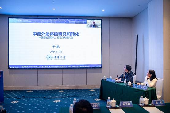 在大会主旨报告阶段,华中科技大学陈建国教授结合自身团队多年工作,介绍《基于氧化还原机制的认知障碍性疾病发生机制及干预药物研究》,希望与武当特色中药研究湖北省重点实验室开展武当道地药材抗神经精神疾病药理作用与产品开发合作。香港大学冯奕斌教授通过《复杂性疾病的中西医结合防治策略和实践》,系统回顾团队在中药抗肿瘤研究等方面取得的成绩。复旦大学陈道峰教授报告《清热解毒方药治疗肺部感染的免疫调控机制与药效物质》。解放军总医院肝病医学部学术主任肖小河教授通过《精准用药:让中医药成为人体“化工厂”的守护神》阐述中药合理用药的重要意义以及本团队的国内外贡献。香港大学刘碧珊英文分享《中西医结合用药的研究》。来自荷兰莱顿大学的王梅博士以实际案例,同与会专家分享《进入欧盟市场的非欧盟植物药品的监管和挑战》。清华大学尹航教授分享团队《中药外泌体的研究和转化》工作。湖北省中药药理专委会的副主委刘洪涛结合自身和地方中药研究,做题为《中药肠道菌群转化与物质基础研究》的报告。