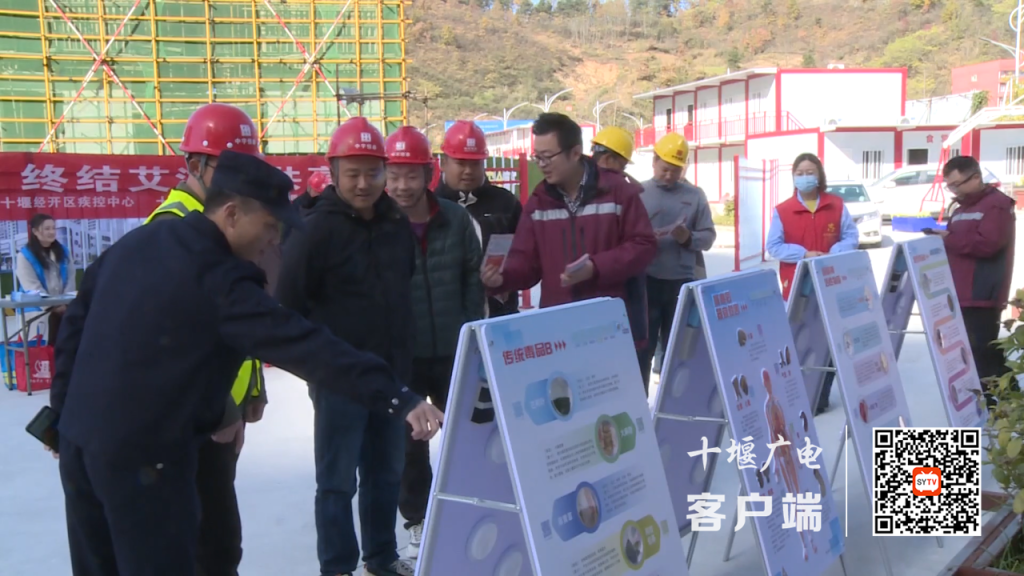 在十堰经开区龙门大道一处建筑工地上,十堰经开区疾控中心工作人员正在向工人们讲解艾滋病的传播途径与方式,发放宣传单和计生用品,而在另一边的毒品仿真模型展板旁,十堰经开区禁毒办工作人员正在向工人们科普新型毒品种类与危害知识。本次防艾禁毒活动连续开展3天,除了在辖区工地进行宣传外,还将深入学校、社区与人流密集场所进行宣讲,让更多的市民学习相关知识,增强防艾意识。