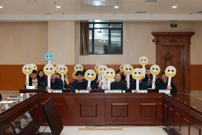 活动现场还设置了“评议”环节,教师评议团通过举牌“满意笑脸”或“不满意哭脸”表达对回复的认可度。此次问政“大考”持续两个小时,教师代表尖锐发问、锲而不舍,职能部门直面短板、毫不含糊。“学校举行这种面对面交流的活动,是推进工作的一种很好的方式。”教师评议团尉迟光斌教授在现场点评中对该活动的形式和效果给予了充分肯定。“除此之外,学校职能部门平时应多深入到基层师生中去,零距离倾听师生心声,解决师生普遍关切。”