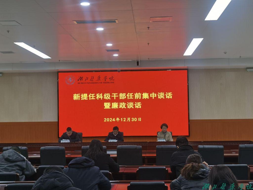 本网讯(通讯员 孙敬龙)12月30日上午,我校在科教楼一楼多功能厅召开新任科级干部集体谈话暨廉政谈话会议。校党委副书记、组织部部长张海蛟出席会议并讲话。校纪委、党委组织部有关同志及全体新任科级干部参加会议。