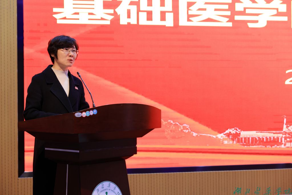 校党委书记郑丹凤做总结讲话,她在讲话中向全院师生致以新年的祝福,并向获奖师生表示祝贺。她肯定了基础医学院近年来取得的成绩,感谢全院教职工为学校发展做出的努力,并激励大家在新的一年里,继续扬帆起航,以更加饱满的热情、更加昂扬的斗志,创造更加辉煌的新篇章!