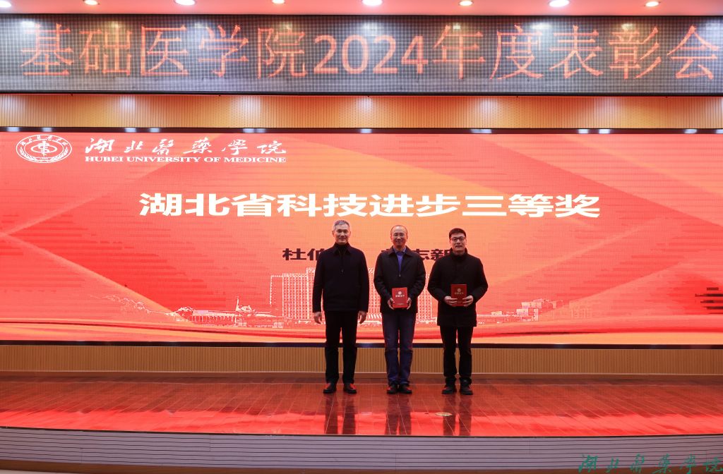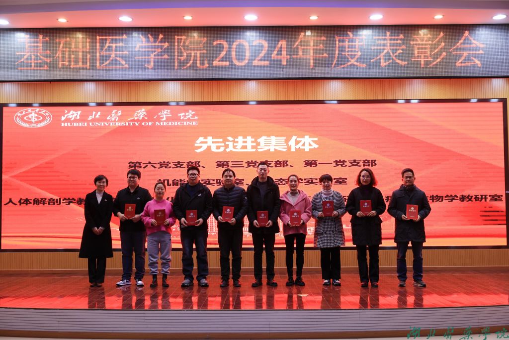 基础医学院书记赵万红宣读2024年获奖文件。校领导和学院领导为2024年学院在人才培养、教学、科研、党建、社会服务等方面表现优异的集体和个人颁发了荣誉证书。