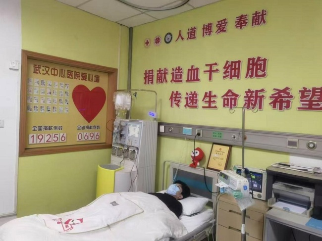 今年1月4日,陈梓锋入住武汉市中心医院,正式进行捐献前造血干细胞动员。每天早晚,他都需要打一次动员剂,他微笑着回忆说:“开始没啥感觉,第二天开始会有一些肌肉酸痛,关节无力等症状,但我一想到我马上可以帮助到其他人,就觉得这些对于我来说很轻松!”