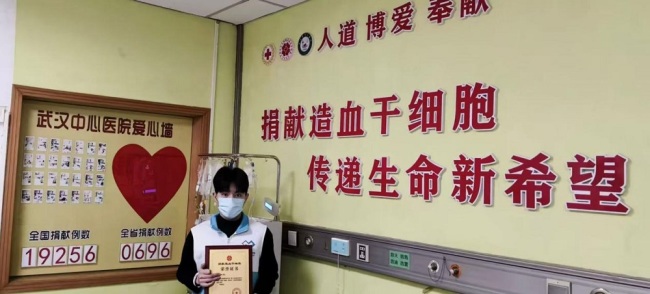 1月7日上午,在华中科技大学附属武汉市中心医院血液内科造干采集室内,一场温暖而伟大的“生命接力,爱心相髓”接力赛热烈展开。湖北医药学院临床学院药护康复专业的陈梓锋同学(化名),如同一颗闪耀的爱心之星,成功捐献造血干细胞,成为中华骨髓库第19256例、湖北省第696例、十堰第34例造血干细胞捐献者,更是今年湖北十堰首例造血干细胞捐献者,为这个寒冬注入了炽热的生命希望。