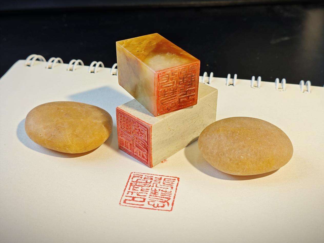 陈公财介绍,这些印章采用青田石、寿山石等材质,运用小篆、甲骨文等多种字体。选择篆刻印章作为礼物,是因为其不仅具有实用价值,更蕴含着深厚的文化内涵,象征着责任、诚信和承诺,这与辅导员老师们一直以来心系学生的工作态度不谋而合。