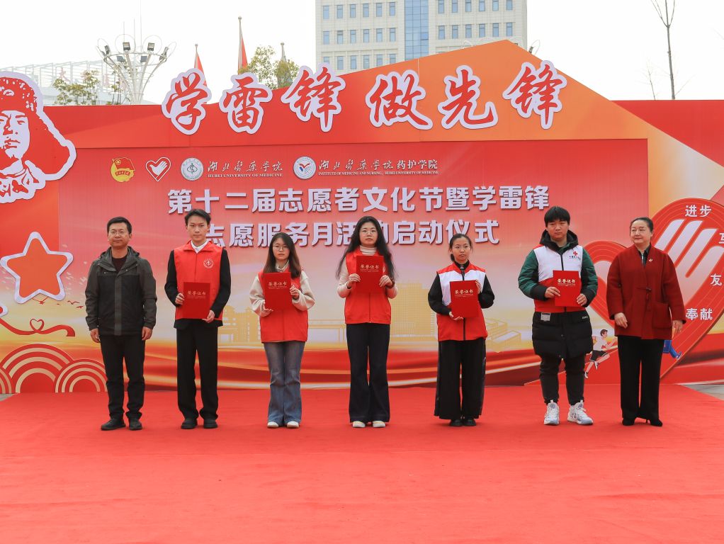 党委学工部部长陈璞和第三临床学院党委书记桂程君老师为我校2024年度“十星级志愿者”代表和“优秀献血个人”代表颁发荣誉证书。