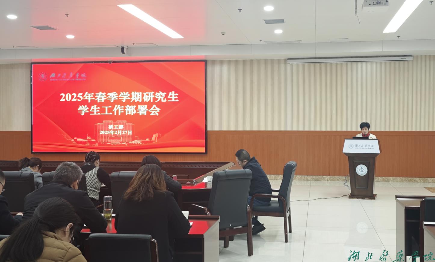 本网讯(文/王友炜 图/黄松鹤)2月27日下午,学校召开2025年春季学期研究生学生工作部署会。会议由党委研工部部长阮绪芝主持,校党委常委、副院长严世荣出席了会议,研工部、学工部负责人及各学院书记、分管研究生工作学院领导、专兼职研究生辅导员参加了会议。