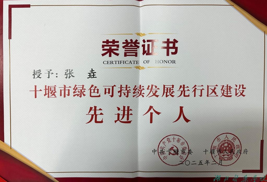 本网讯(通讯员 刘莹)近日,十堰市委、市政府发布表彰决定,对2024年十堰市“绿色可持续发展先行区建设”“高水平保护和高质量发展”先进集体和先进个人进行表彰,我校张垚老师荣获十堰市“绿色可持续发展先行区建设”先进个人荣誉称号。