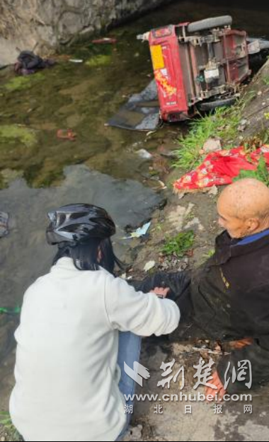 据介绍,事情发生在3月5日上午,湖北医药学院第四临床学院襄阳校区实习调休的学生王艳和同伴刘丰羽,正在户外骑行锻炼身体,突然看到路边一名村民焦急挥手喊着救人,随即停下前去查看情况。两人发现,一位老爷爷与三轮车一同翻入3米多深的小桥沟中,全身湿透,情况危急。
