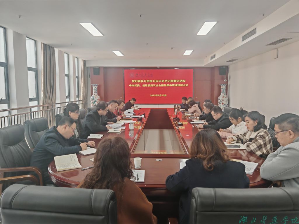 本次培训采取“线上+线下+学习交流”相结合模式。3月7日和8日,全体纪检干部到十堰市纪委党风廉政教育基地参加中央纪委国家监委直播授课,线上课程由中央纪委国家监委有关同志重点解读学习贯彻中央纪委四次全会精神和新修订的《监察法》内容,辅导报告主题鲜明、内容丰富、紧贴实际、深入浅出,帮助学员进一步学深悟透习近平总书记重要讲话、准确把握中纪委四次全会精神实质“充电蓄能”。3月10日下午在学校1708会议室,举行学习贯彻习近平总书记重要讲话和中央纪委、省纪委四次全会精神专题培训班结业式,校党委常委、纪委书记、监察专员徐荣同志出席并讲话。