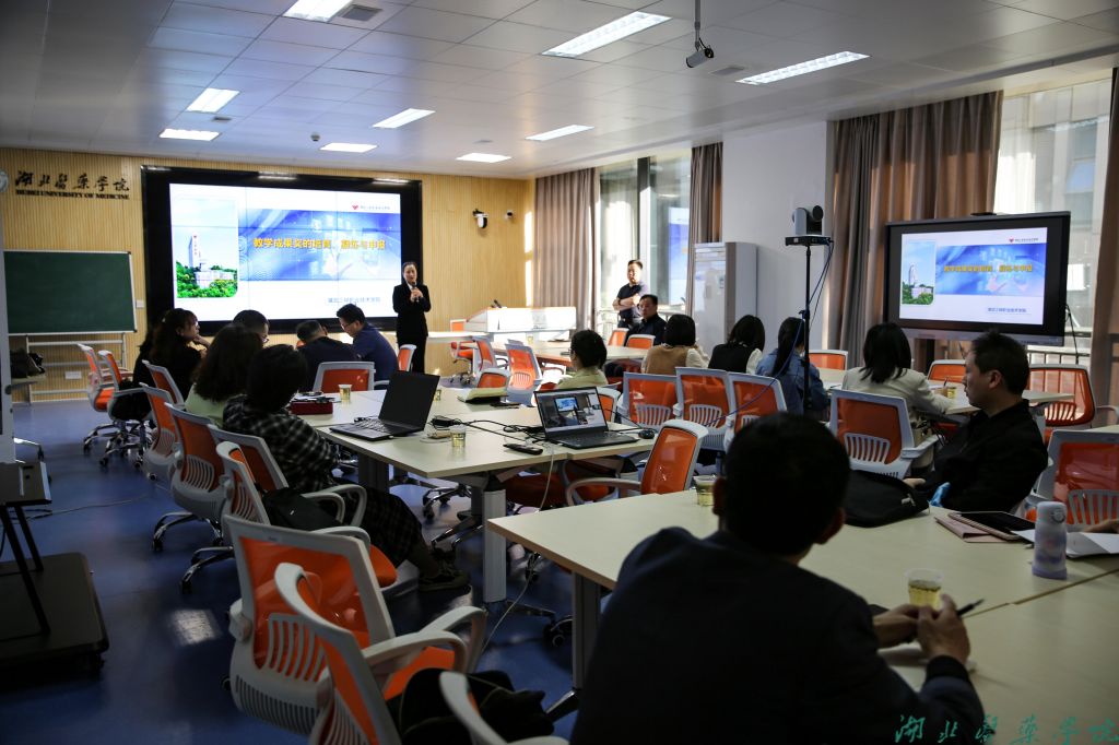 校党委常委、副校长谭艳出席活动并致辞,对沈曙红教授的到来表示热烈欢迎。谭艳强调,教师是学校发展的根基,教学成果奖是教育教学改革的精华体现,具有可推广、可复制的价值。梳理与凝练优秀教学改革经验,是全体湖医药人义不容辞的使命,对推动教育教学改革、提升人才培养质量至关重要。谭艳指出,教学成果奖源自真抓实干,绝非撰写之功;学校的发展离不开学校与教师的齐心协力、双向奋进;教师应注重提升底层思维逻辑,强化协作意识,借此夯实专业能力与素养。她鼓励各位教师珍惜此次与专家面对面交流的宝贵机会,用心学习,精心打磨教学成果,打造湖医药教育教学的闪亮“金名片”。