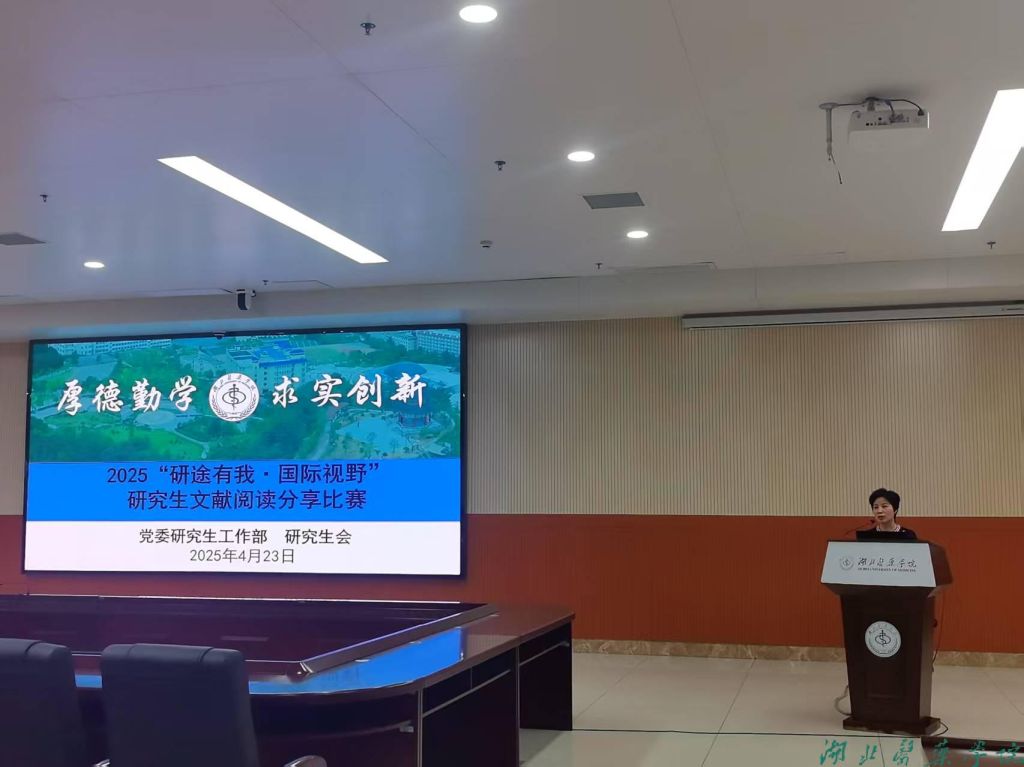 本网讯(通讯员 王友炜)4月23日(第30个世界读书日)我校在科教楼一楼多功能厅开展“研途有我·国际视野”研究生文献阅读分享交流活动。活动由研究生顾祎寒、张澜主持,党委常委、副校长严世荣出席了活动,党委研工部、研究生院、生物医药研究院、武当特色中医药湖北省重点实验室、基础医学院、直属附属太和医院相关专家担任此次比赛的评委。