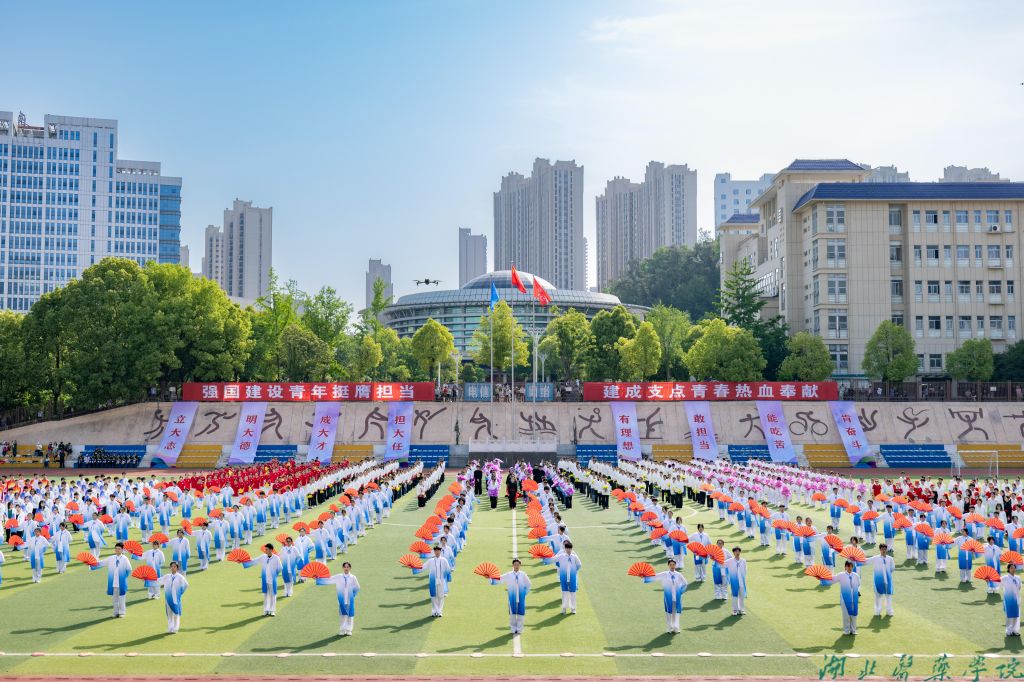 大型表演《六秩春华育桃李服务支点建新功》为现场师生带来了一场精彩的视听盛宴,将现场氛围推向高潮。表演第一篇章为杏林芳华。其中,太极扇表演《象王行》中,130名学生手持红扇,以刚劲有力的武术动作配合着激昂的鼓点,整齐划一地展现出武术的阳刚之美;伞舞《破阵乐》则以优美的舞姿和灵动的伞花变化,将力量与柔美完美融合;街舞《哪吒》以充满活力的动作和富有感染力的音乐燃爆全场;第二篇章甲子弦歌中,朗诵与歌舞结合,回顾了学校六十年来的风雨历程。巨幅校旗在队伍上方惊艳亮相,表演者摆出“60”数字,表达对学校建校60周年的热爱与祝福。第三篇章赤子丹心中,汉族、藏族、土家族等多民族学生演唱歌曲《我的家》,唱响民族团结赞歌。