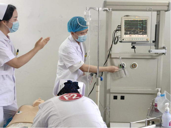 大赛分为个人竞赛和团队竞赛两个环节。个人竞赛包括留置针输液、氧疗、心肺复苏项目,参赛选手们凭借扎实的专业知识和精湛的操作技能,展现了护理专业学生的专业素养。团队竞赛则以真实急救场景案例为基础,重点考核学生的急救技术操作技能、临床思维、人文关怀能力以及团队协作和沟通能力。比赛中,各参赛队伍紧密配合,展现了良好的团队协作精神和应急处理能力。