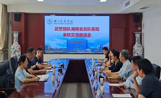 本网讯(通讯员 朱逢源)5月15日上午,武装警察部队湖南省总队医院副院长姜远柏一行来校洽谈合作,党委常委、副校长谭艳出席会议,教务处、研究生院、科学技术发展研究院、第一临床学院、生物医学工程学院负责同志参加会议,会议由刘涛主持。