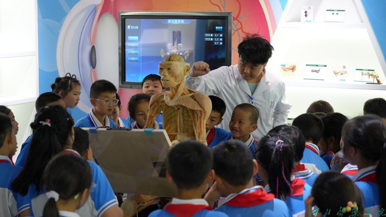 下午的行程聚焦医学与科学探索。在“雏鹰计划”社会实践队志愿者们带领下,参观了湖北医药学院校史馆、好人馆和名人馆,孩子们通过一张张泛黄的照片、一个个感人事迹,感受医学工作者“敬佑生命、救死扶伤”的职业精神和学校“艰苦奋斗、自强不息、厚德济世、励学育人”的湖医药精神。