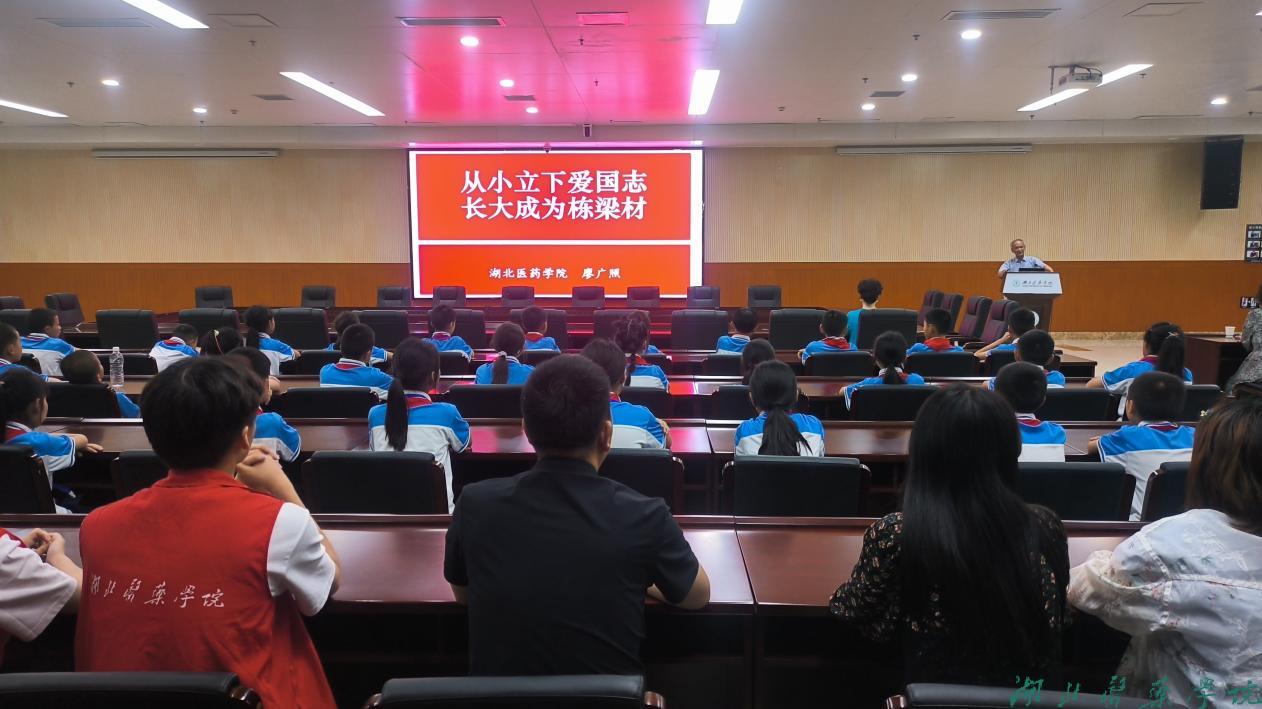 在科教楼一楼多功能厅,湖北医药学院退休专家廖广照教授以“从小立下爱国志,长大成为栋梁材”为主题,通过解析“国”之含义、爱国之意义与践行路径,为县河镇中心学校的孩子们教授红色故事,注入爱国精神力量。他结合“七一勋章”获得者魏德友50余年坚守边境、巡边20万公里的感人事迹,串联古代爱国典范——屈原以死明志的赤诚、岳飞精忠报国的壮志,生动诠释“爱国是信仰,更是行动”,激励广大学子将个人理想融入国家发展,在新时代书写担当篇章。
