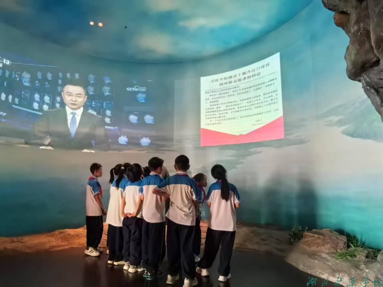 上午十时许,来到十堰市博物馆(湖北南水北调博物馆)。在工作人员的引导下,学生们通过丰富的影像资料、实物模型和互动展区,深入了解十堰历史及南水北调工程的宏伟历程与十堰市作为核心水源区的奉献担当。当看到库区移民为“一江清水送北方”而背井离乡的故事时,不少学生红了眼眶。“我们要认真学习践行习近平总书记给丹江口库区环保志愿者的重要回信精神,弘扬志愿服务精神,当好‘守井人’,确保‘一泓清水永续北送’!”一名学生坚定地说到。