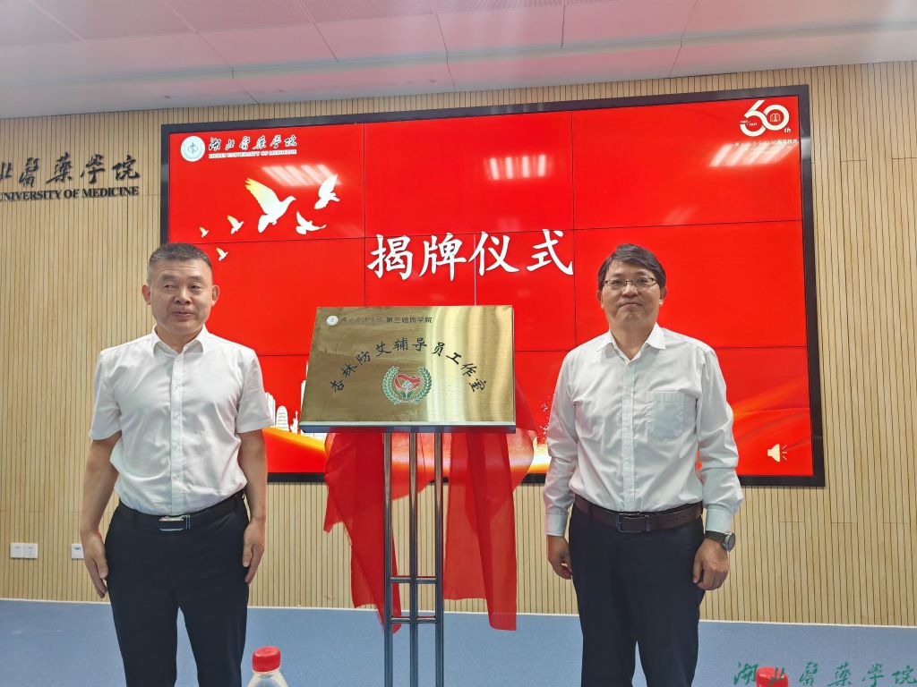 本网讯(通讯员 朱力)为全面落实立德树人根本任务,开创具有医学院校特色的学生工作品牌,构建“防艾教育+职业素养”双轨育人模式。5月19日上午,第三临床学院在教发中心102室举行了“杏林防艾”辅导员工作室揭牌仪式暨辅导员沙龙。校党委副书记张海蛟,十堰市疾病预防控制中心主任池雄,茅箭区疾病预防控制中心副书记梁荣辉,学生工作部(处)副部长郭琴,第三临床学院党委书记桂程君、副院长李平飞,各学院分管学生工作领导及辅导员参加此次活动,活动由第三临床学院党委副书记李芹主持。
