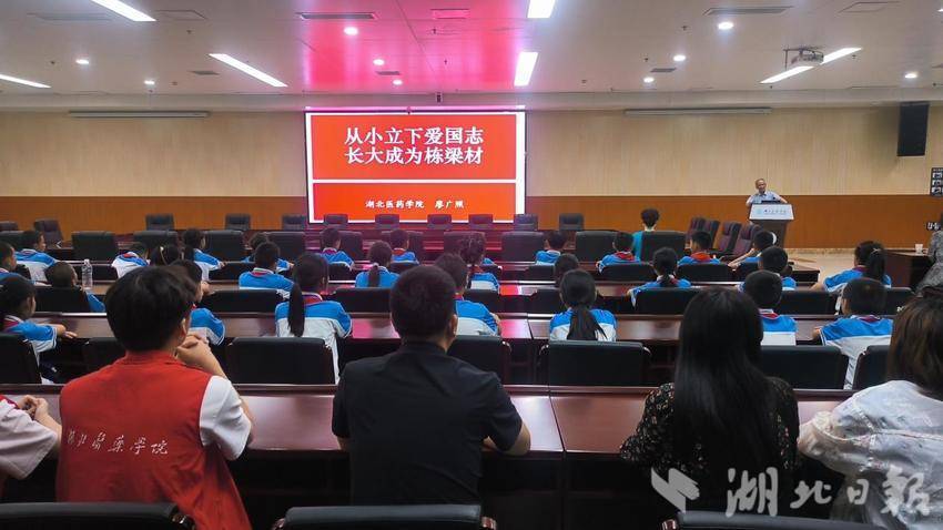 在科教楼一楼报告厅,湖北医药学院退休专家廖广照教授以“从小立下爱国志,长大成为栋梁材”为主题,通过解析“国”之含义、爱国之意义与践行路径,为县河镇中心学校的孩子们教授红色故事,注入爱国精神力量。他激励广大学子将个人理想融入国家发展,在新时代书写担当篇章。