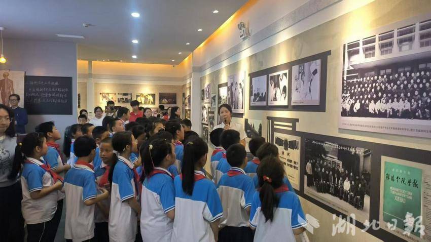 下午的行程聚焦医学与科学探索。在“雏鹰计划”社会实践队志愿者们的带领下,孩子们参观了湖北医药学院校史馆、好人馆和名人馆,通过一张张泛黄的照片、一个个感人事迹,感受医学工作者“敬佑生命、救死扶伤”的职业精神。