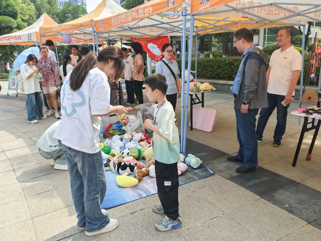 活动当日,校史馆内“校史探秘小达人”研学活动中,孩子们在讲解志愿者引导下通过老照片、文物展陈和趣味问答,深入了解学校60年发展历程与医学人文故事;生命科学馆里,专业教师与志愿者带领孩子们观察人体解剖标本、体验“小小医生”角色扮演,以互动教具直观学习生命科学知识;“我心中的湖医药”书画创作派对上,退休教职工艺术家现场指导小朋友们以笔墨、彩纸创作校园建筑、校庆元素等主题作品;志愿公益集市同步开设急救技能培训、健康科普、中医理疗等医学特色摊位,孩子们化身“小医生”参与心肺复苏实操、健康知识问答,在志愿服务中培养社会责任感;安全技能小课堂中“彩虹”灾害医学救援志愿服务队等团队分场地开展急救技能、禁毒知识教学,通过模拟演练和“安全小卫士”闯关挑战,帮助孩子们掌握实用自救技巧;文明广场的亲子跳蚤市场上,家庭间闲置物品交换与校史文创周边选购同步进行,在环保教育与情感交流中彰显校园大家庭温暖。