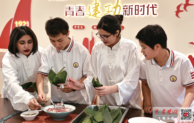 端午节将至,5月26日下午,湖北医药学院和十堰市第一中学共同举办了一场别开生面的“粽情端午中外共融”端午节文化交流活动。19名来自印度、巴基斯坦、尼泊尔等国的留学生,与市第一中学的师生们一起包粽子,体验中国传统节日文化,增进彼此间的友谊。
