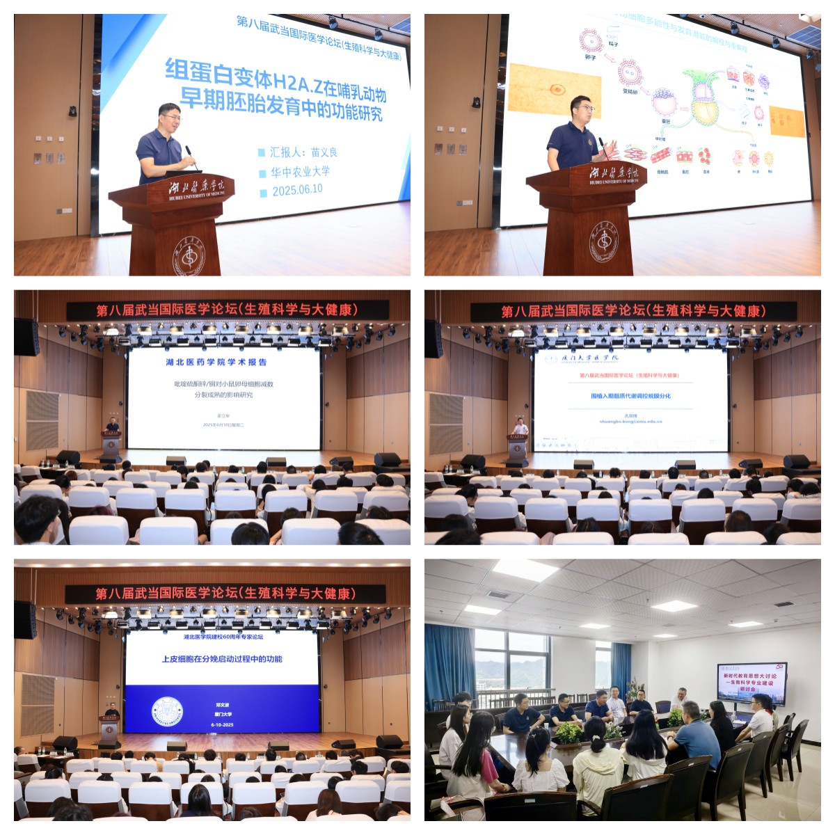 学术报告环节,来自华中农业大学的国家杰青苗义良教授介绍了新型组蛋白变体H2A.Z在早期胚胎发育中的动态修饰模式;中国农业大学国家优青高帅教授阐述了诱导多能干细胞(iPSCs)在再生医学领域的巨大潜力;华中农业大学教育部新世纪优秀人才霍立军教授深入探讨了环境污染物吡啶硫酮锌和吡啶硫酮铜对生殖健康的潜在威胁;厦门大学医学院国家优青邓文波教授和孔双博教授结合其团队研究,分别与大家探讨了上皮细胞在分娩启动中的作用和围植入期脂质代谢在蜕膜分化过程中的重要调控作用。