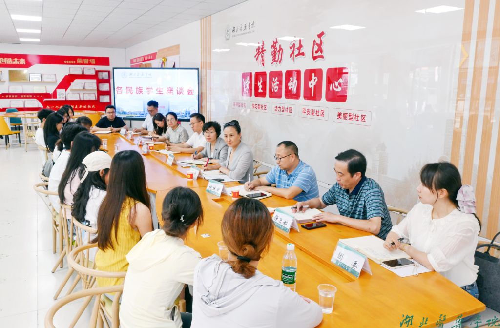 本网讯(文/欧阳妮 图/唐馨雯琪)6月10日下午,学校在精勤社区学生活动中心召开各民族学生座谈会。党委书记郑丹凤出席并讲话,党委常委、副校长、统战部部长谭艳主持。