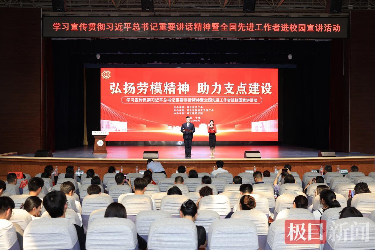 该活动由湖北省总工会主办、湖北省教科文卫体工会承办、湖北医药学院协办,是湖北省高校系统武汉市外首场劳模宣讲会。活动以“弘扬劳模精神 助力支点建设”为主题,通过劳模事迹讲述与情景剧展演相结合的形式,生动展现了新时代劳模群体的奋斗风采。来自十堰市各高校的上千名师生到场聆听,两千余名观众通过直播同步观看。