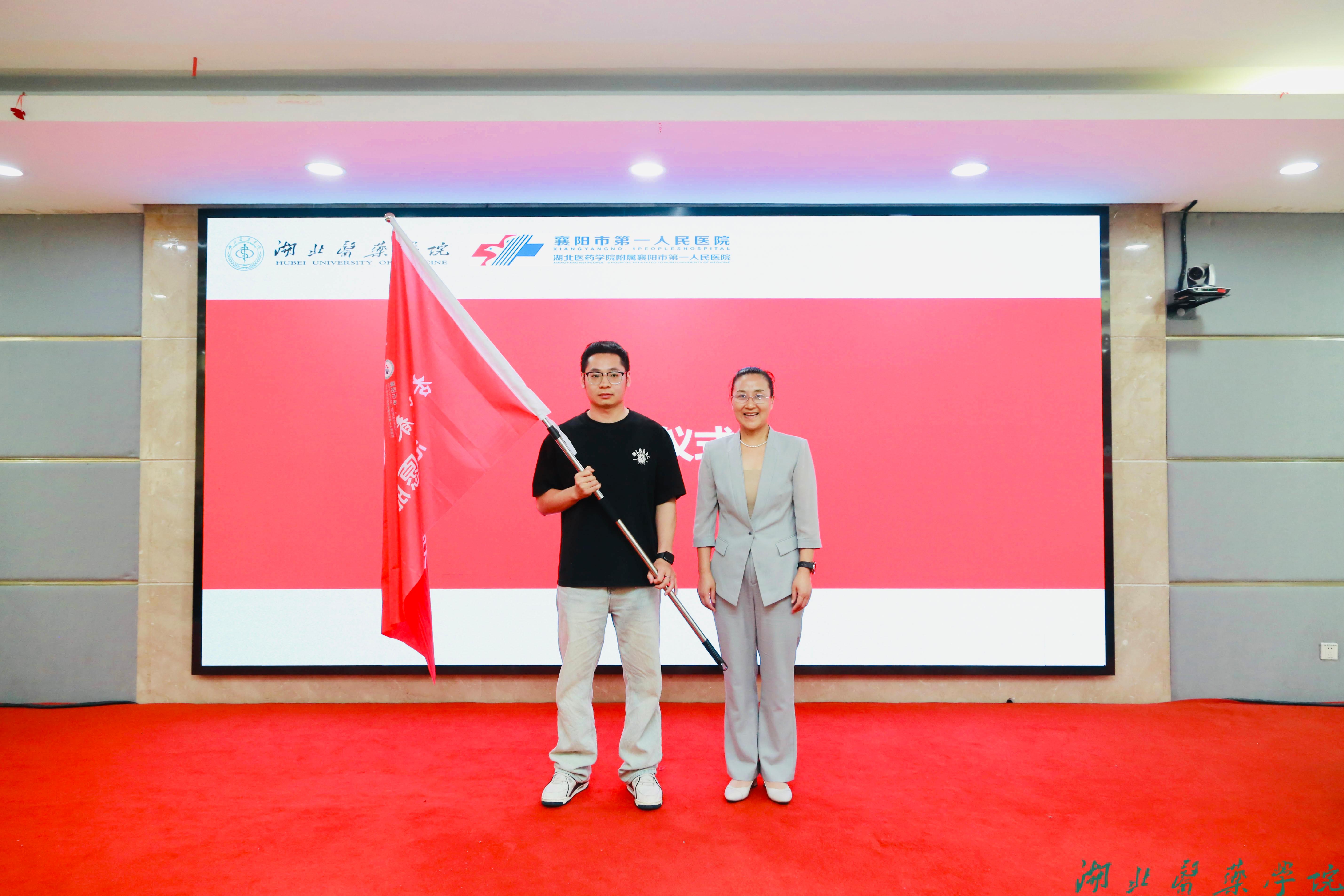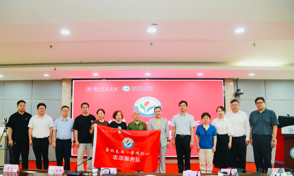 本网讯(通讯员 黄兆辉 杨凯)6月17日下午,我校首个援藏志愿服务队——湖北医药学院“杏林春雨・雪域仁心”志愿服务队成立仪式在附属襄阳市第一人民医院康泰楼二楼会议厅举行。校党委常委、副校长、统战部部长谭艳出席活动,校团委、第四临床学院相关负责人、志愿服务队全体指导老师、援藏志愿者代表、学生代表共计70余人参加活动。成立仪式由第四临床学院副院长刘岳主持。