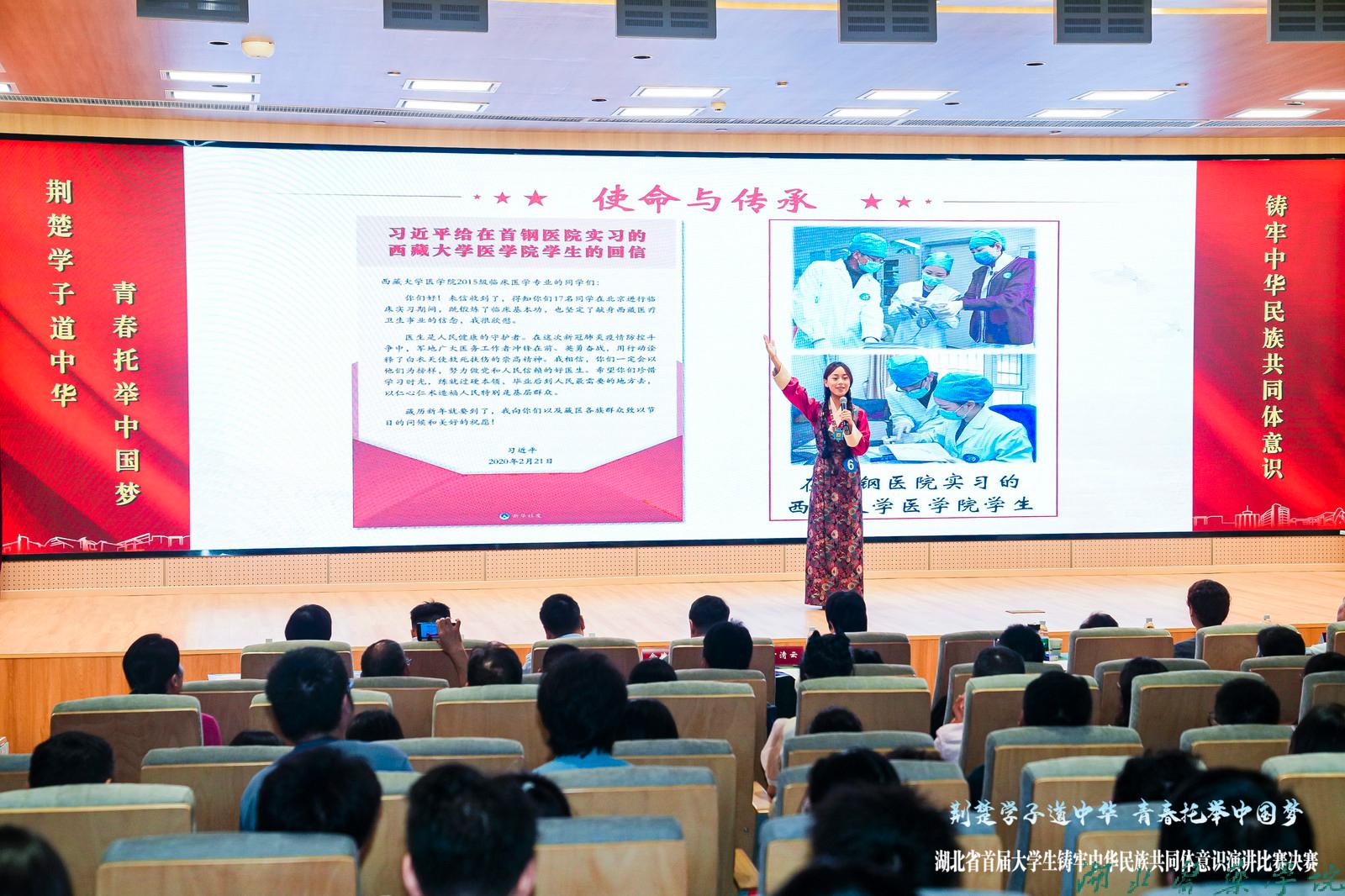 本网讯(通讯员 张慧丽)6月16日,“荆楚学子道中华,青春托举中国梦”湖北省首届大学生铸牢中华民族共同体意识演讲比赛决赛在宜昌市三峡大学隆重举行。全省40所高校学子同台竞技,我校2024级临床医学专业藏族学生次仁拉姆荣获优秀奖。