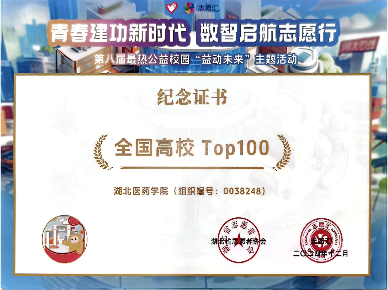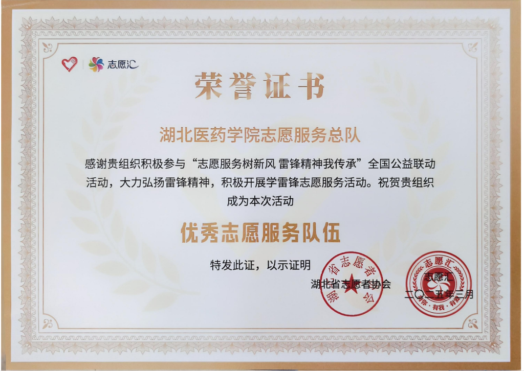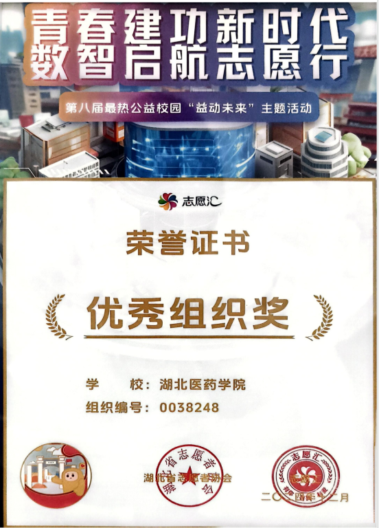 本网讯(通讯员 郭俊)近日,第八届全国最热公益校园“益动未来”主题活动评选结果揭晓,我校凭借出色的志愿服务组织能力荣获“优秀组织奖”和“全国高校TOP100”称号,湖北医药学院志愿服务总队荣获全国“优秀志愿服务队伍”称号。
