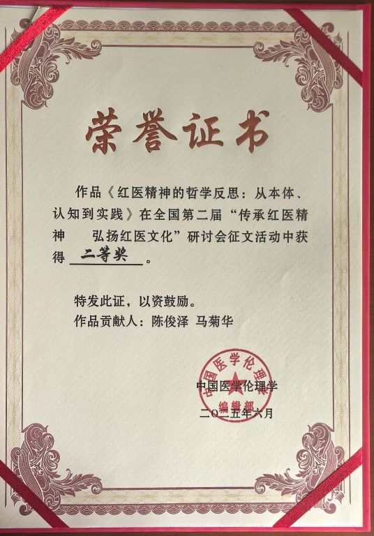 此次获奖为深化“医廉”课题研究,构建红医育人体系提供新思路新方法,推动我校医学伦理学研究和发展,让红医精神在新时代绽放更加耀眼的光芒。(审核 孔祥清)