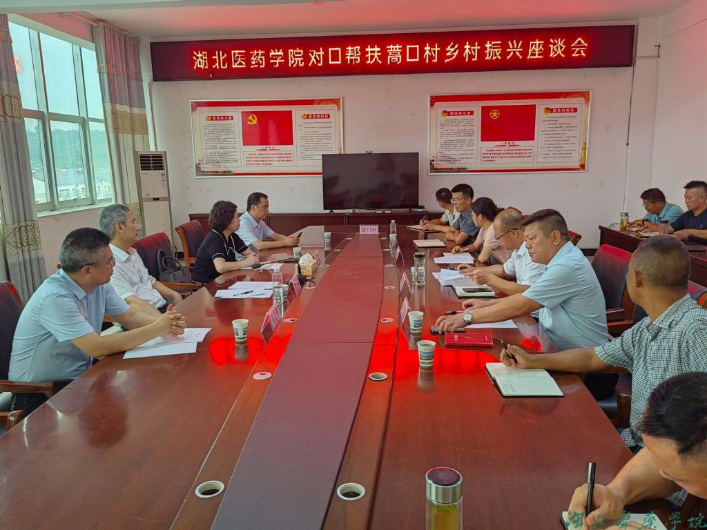 座谈会上,蒿口村党支部书记彭泽洪介绍了村基本情况和发展变化。驻村第一书记闫浩江汇报了2021年以来驻村帮扶工作情况。丹江口市六里坪镇党委副书记、镇长蔡佑东介绍六里坪镇及湖北医药学院药学院乡村振兴帮扶情况。罗杰校长在肯定学校驻村干部助力乡村振兴,展现湖医药人精神风貌的同时,提出三点希望和要求:一是进一步发挥党建引领作用;二是进一步密切党群、干群关系,融入到老百姓中间,多和老百姓交流;三是进一步发挥学校优势,在教育、健康保障上发挥自身优势服务好老百姓,要着力解决老百姓急、难、愁、盼的事情。最后代表学校向地方政府大力支持驻村工作队工作表示感谢。