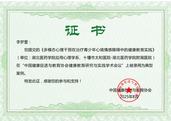 该案例聚焦青少年心境情感障碍这一重要公共卫生问题,探索多模态心理干预与健康教育相结合的实践路径,不仅具有较高的实践价值,也为相关领域的教育干预提供了有益参考。这一成果的获得,彰显了我校应用心理学专业在人才培养、科学研究与社会服务方面的持续进步,是学科坚持“科教融汇、医教协同”发展路径的生动体现。(审核 陈全新)