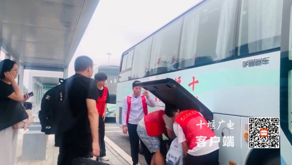 早上八点,在十堰武当山机场、高铁十堰东站,不少新生陆续抵达,志愿者们帮助大家搬运行李,学校大巴车提前就位,将新生直接送往校园。